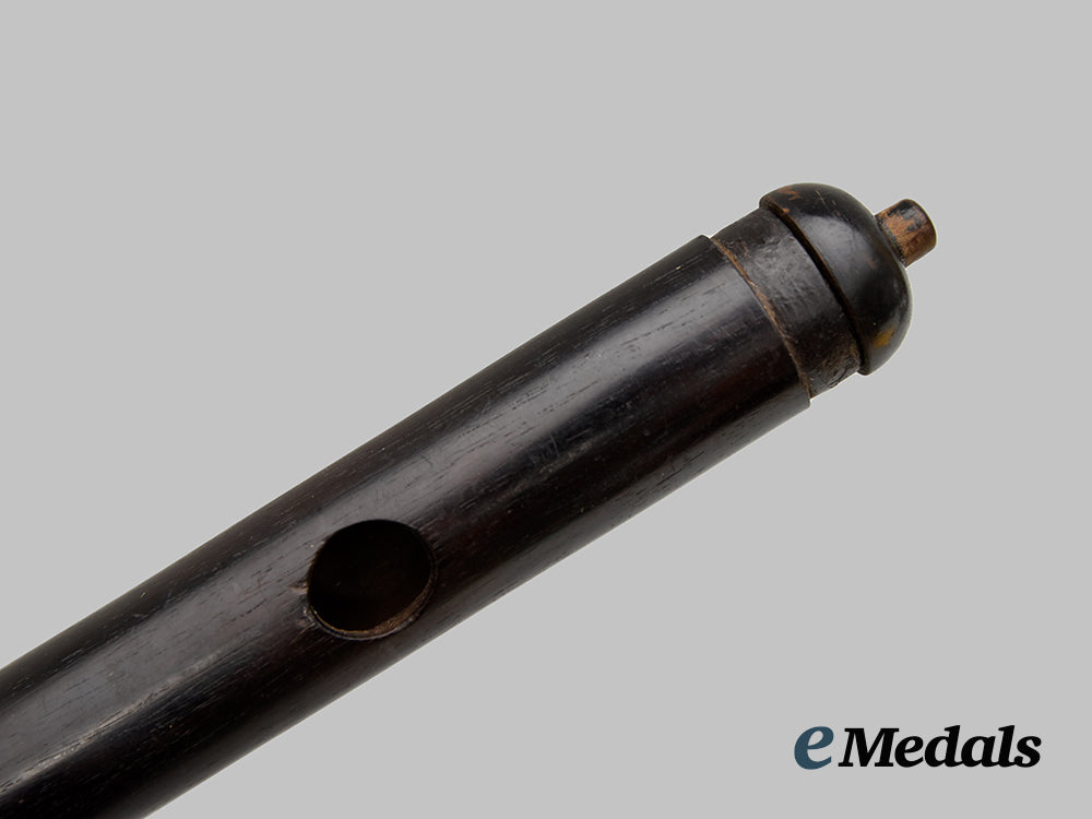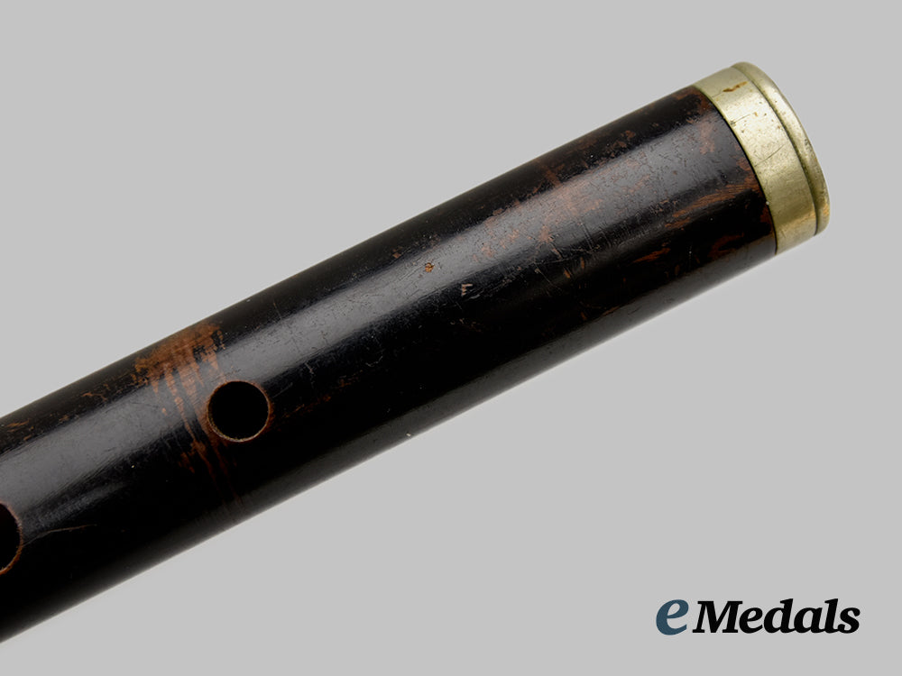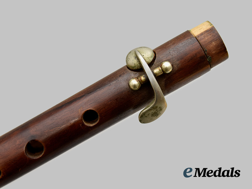 AWooden Recorder, unknown maker, metal fitting at the end, measuring 38.8 cm, very fine condition.