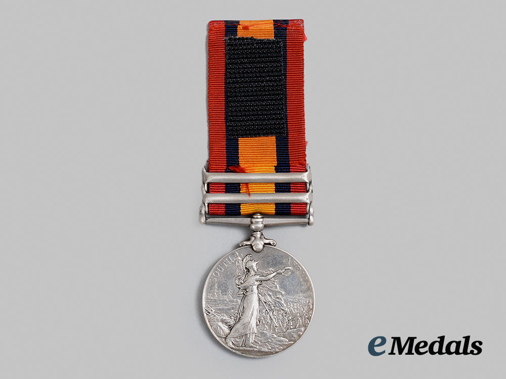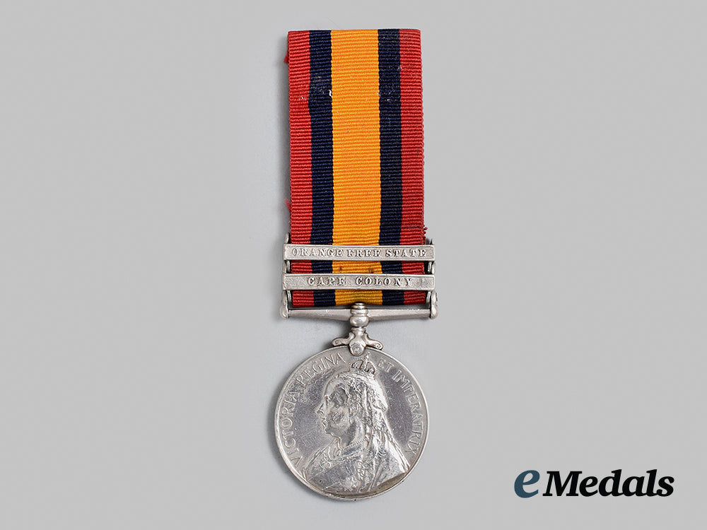 Instituted 1899. In silver, full size, rim impressed 2135 3RD CL: TPR:’S. ANGER. S.A.C., worn on replacement ribbon, court mounted with Velcro strip on reverse, with ORANGE FREE STATE and CAPE COLONY clasps, wear to relief on the obverse, several edge knocks, bright, in very fine condition.