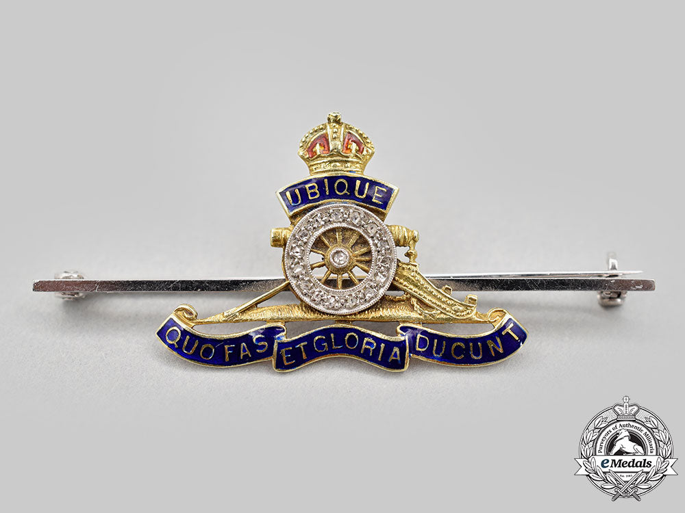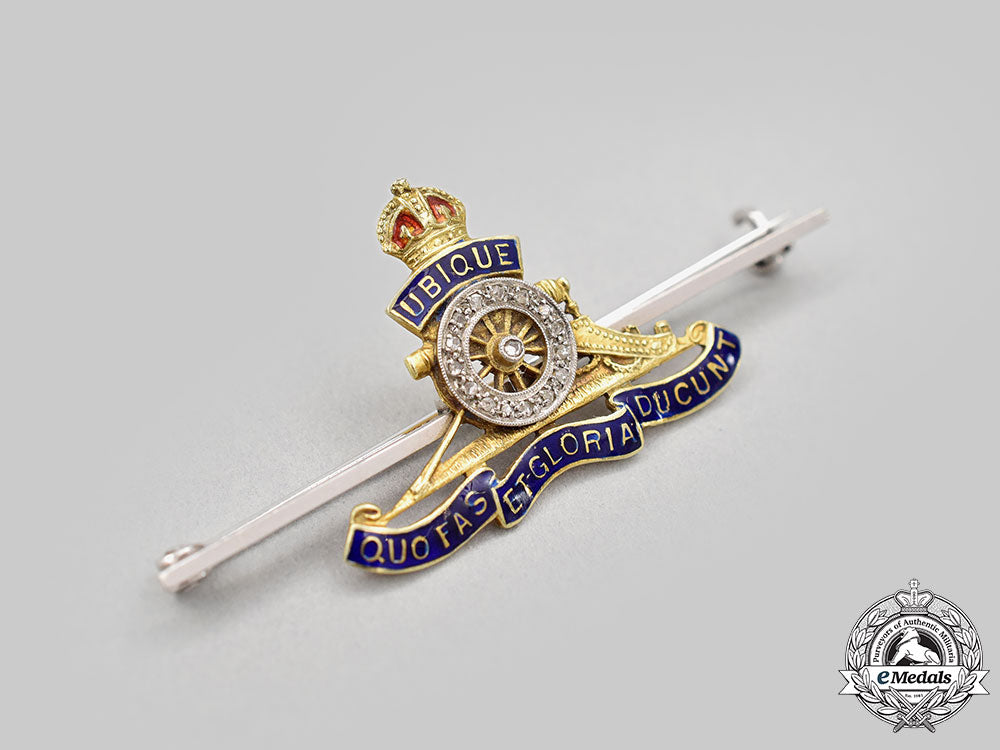 United Kingdom. A Royal Regiment Of Artillery Tie Clip In Gold With Diamonds, C. 1915