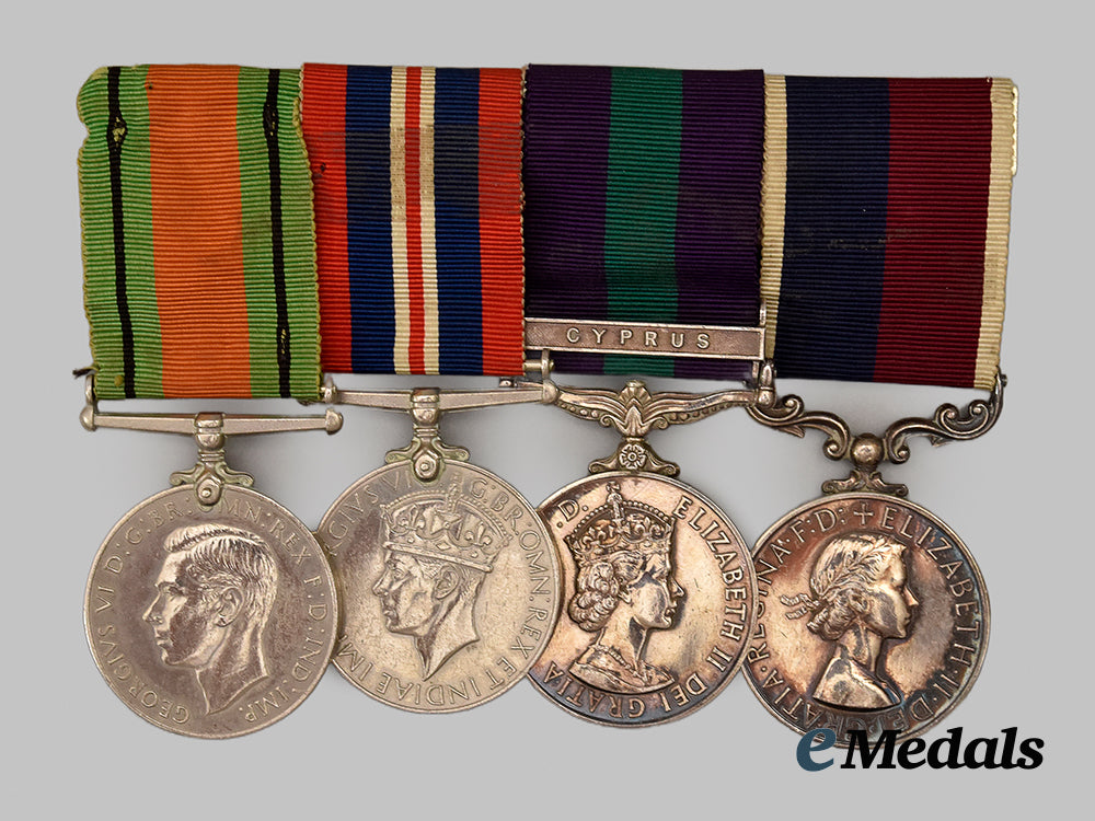 - A General Service Medal with CYPRUS clasp, in silver, full size, rim impressed 903579 SGT. P. A. WILKINS. R.A.F., worn on original ribbon, minor wear, lovely patina, in very fine condition.