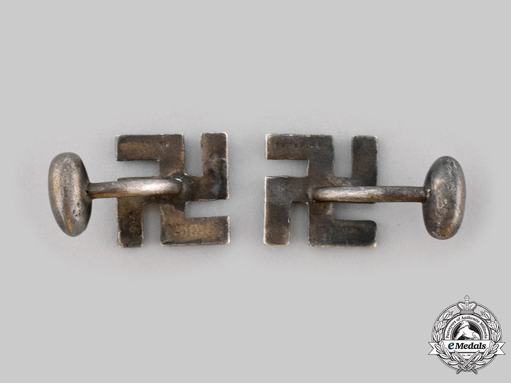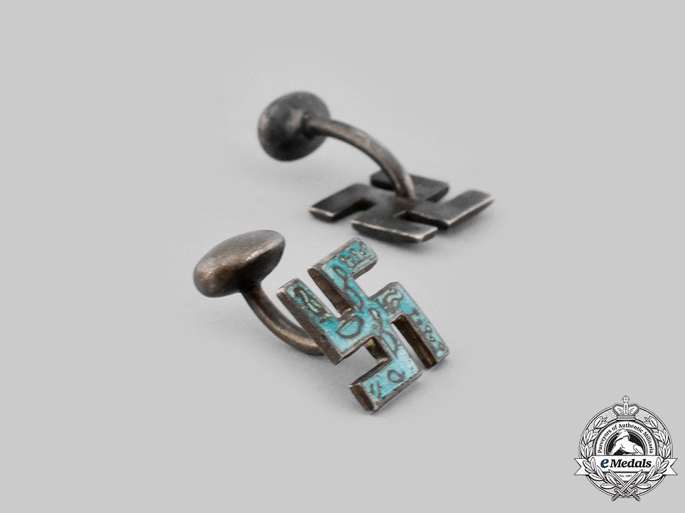 United Kingdom. A Set Of Silver Swastika Cufflinks By Joseph Gloster