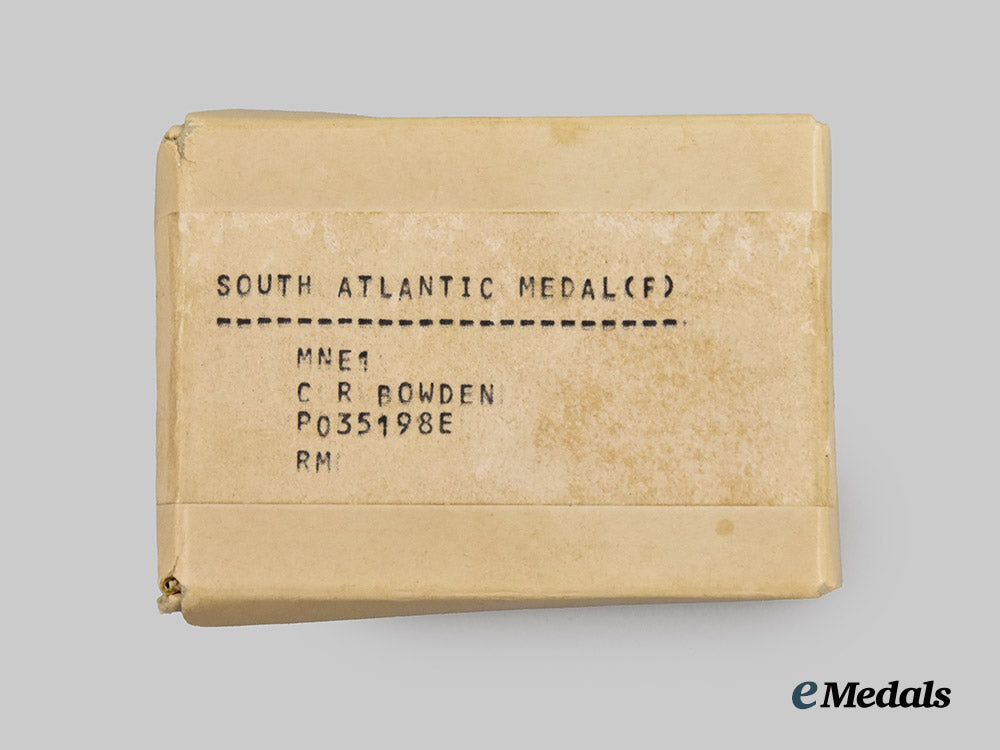 Footnote: The South Atlantic Medal was awarded to British military personnel and civilians for service in the Falklands War of 1982 between the United Kingdom and Argentina. Over 33,000 medals have been awarded.