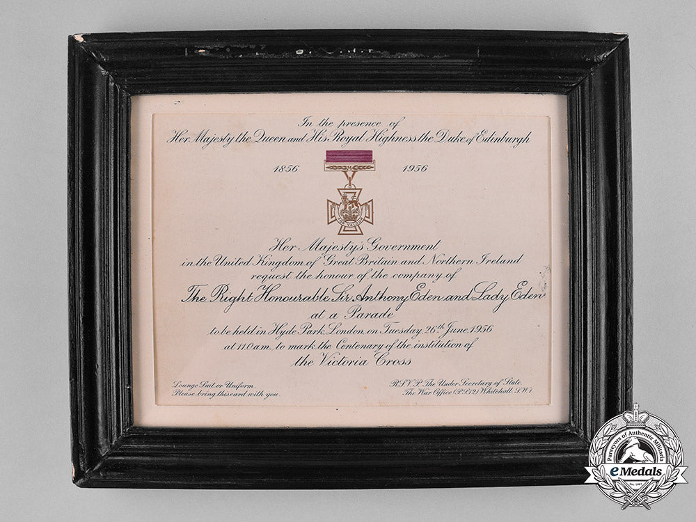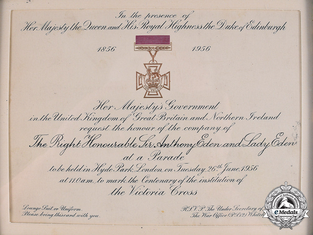United Kingdom. A Victoria Cross Parade Invitation To Prime Minister Sir Robert Anthony Eden And Lady Eden 1956