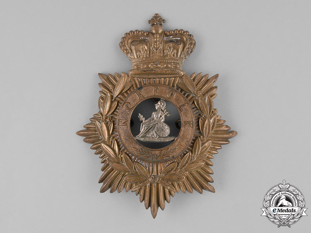 United Kingdom. A Victorian Norfolk Regiment Helmet Plate