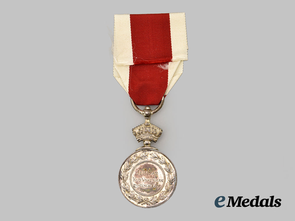 Victoria. (JEMIDAR KUB WHAL KHAN 12TH BENGALK CAVLY). Naming is privately engraved, suspension previously broken and reapplied, very fine.