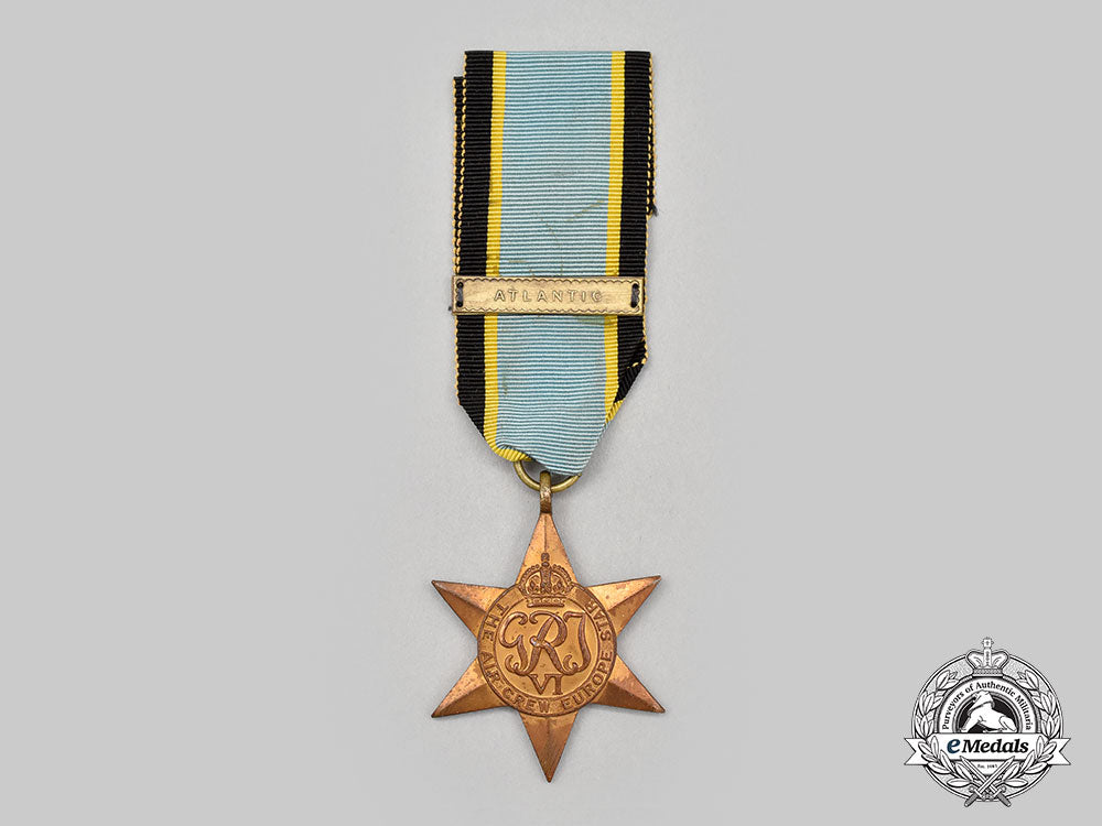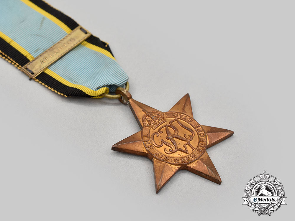 Footnote: The Air Crew Europe Star is a military campaign medal, instituted by the United Kingdom in May 1945 for award to British and Commonwealth air crews who participated in operational flights over Europe from bases in the United Kingdom during the Second World War. Two clasps were instituted to be worn on the medal ribbon: (i) Atlantic and (ii) France and Germany.
