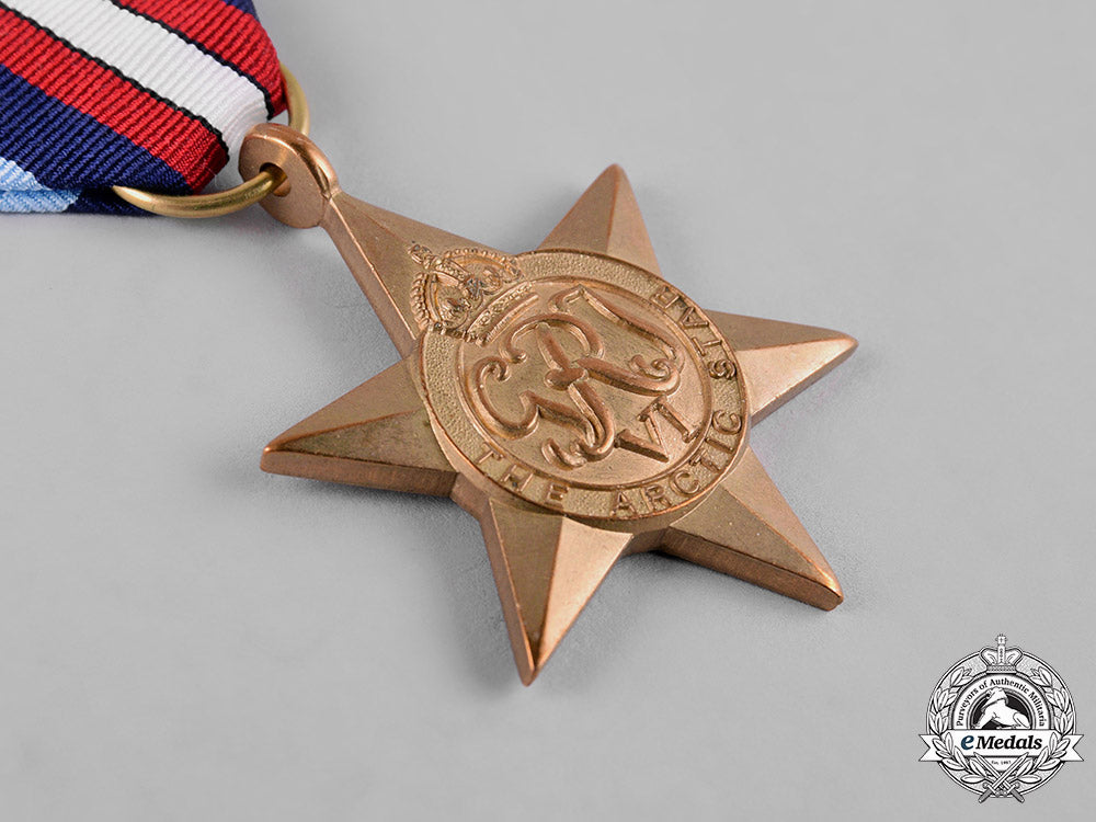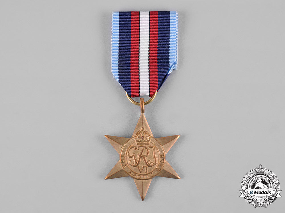 The Arctic Star has been controversial, since it is the first British medal to be instituted and awarded using a dead monarch's cypher or effigy, and who did not give permission for it to be instituted. The medal has also been criticized by other groups, who maintain that the veterans of the convoys had already been amply rewarded with medals for this campaign, and they should not have received special treatment over other veterans who have been denied similar recognition.The medal was awarded for any length of operational service north of the Arctic Circle by members of the British Armed Forces and the Merchant Navy. The qualifying area is defined as 66° 32’ North Latitude and the qualifying period recognizes the particular severity of the conditions experienced by those who served in the Arctic. The inclusive qualifying period of service is September 3, 1939 to May 8, 1945, the duration of the Second World War in Europe. Though the Arctic Star is intended to recognize the service of personnel in the Arctic convoys of the Second World War, other members of the military and civilians may also qualify. Eligibility is defined as follows: Royal Navy and Merchant Navy personnel must have served anywhere at sea north of the Arctic Circle. This includes, but is not limited exclusively to, those ships which participated in, and in support of convoys to North Russia. Fleet Air Arm personnel who did not qualify by sea service may qualify under the criteria applicable to Royal Air Force personnel; Air crew of the Air Forces are eligible if they landed north of the Arctic Circle or served in the air over this area. Non-air crew who performed operational service in the area, for example ground crew or those who sailed with Catapult Aircraft Merchant Ships, are also eligible; Army personnel who served on His Majesty’s ships or in defensively equipped merchant ships qualify under the rules applying to the Navy or Merchant Navy. Personnel who took part in land operations north of the Arctic Circle are also eligible for award; Civilian Members of the few approved categories who qualify for Campaign Stars will be eligible so long as they met any qualifying criteria while they served in support of military operations; and Foreign nationals who served in British or Dominion Forces, such as the Royal Canadian Navy and Royal Australian Navy, are eligible for the Arctic Star so long as the individuals have not been recognized by a similar award from their own governments. Eligibility for the Arctic Star does not affect an individual's eligibility for any other previously awarded campaign medals, nor does it automatically entitle individuals to any further awards.