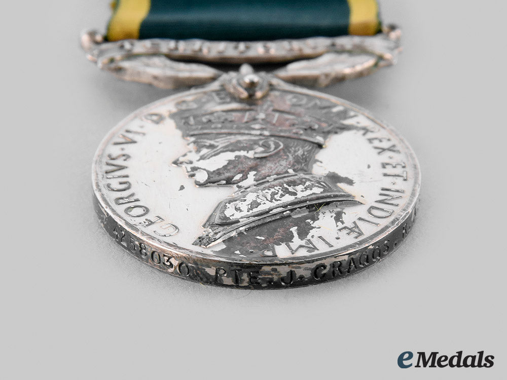 United Kingdom. An Efficiency Medal, To Private J. Craggs, Royal Army Service Corps