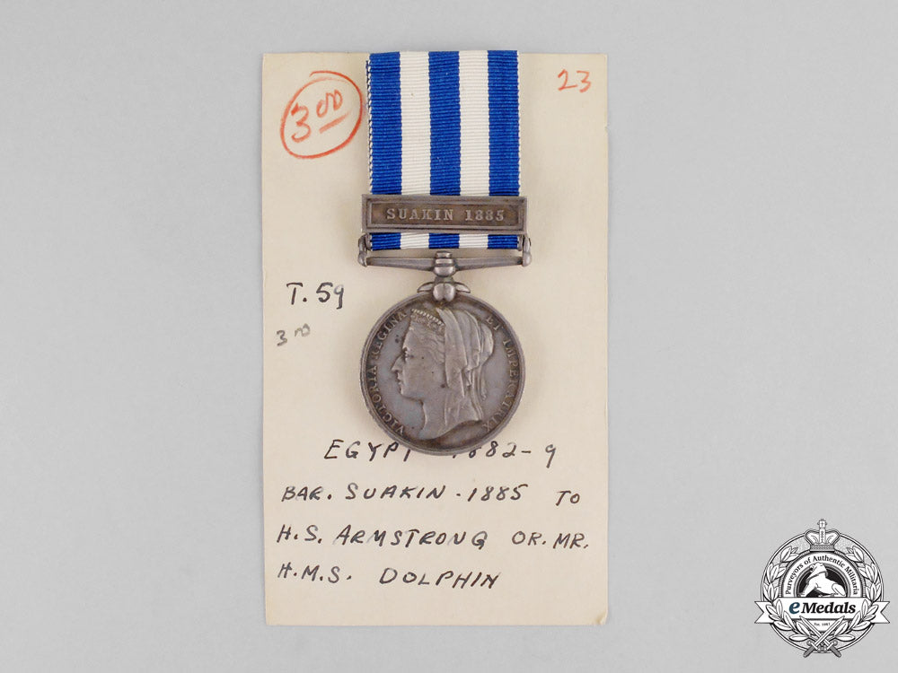 United Kingdom. An Egypt Medal 1882-1889 To Quartermaster H.s. Armstrong, H.m.s. Dolphin