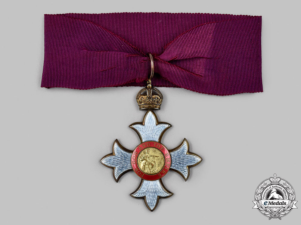 Footnote: The Most Excellent Order of the British Empire was established by King George V in 1917 to recognize civilian war efforts in Great Britain and elsewhere in the British Empire. Military and civil divisions were established the following year. It has since grown into the most widely awarded order in the United Kingdom. There are 2 versions of the Commander. The first version dates from 1917 to 1937 and depicts an effigy of Britannia on the obverse medallion. The first version is worn from a purple ribbon. The Commander is worn by men on a neck ribbon and by women on a bow.