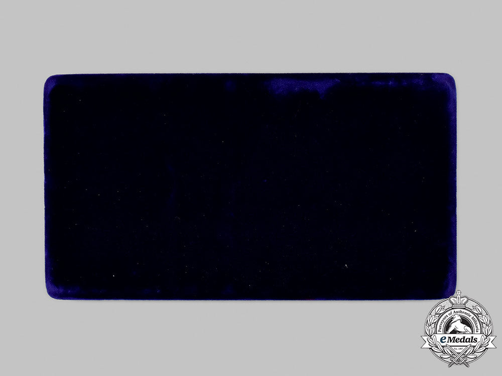 Contained in a wood and velvet case, interior lid marked ANC, removable interior velvet medalbed. Measures 193mm (w) x 108mm (l) x 32mm (d), lid sits slightly ajar from base, light wear to exterior velvet lid, hinge functional, in very fine condition.