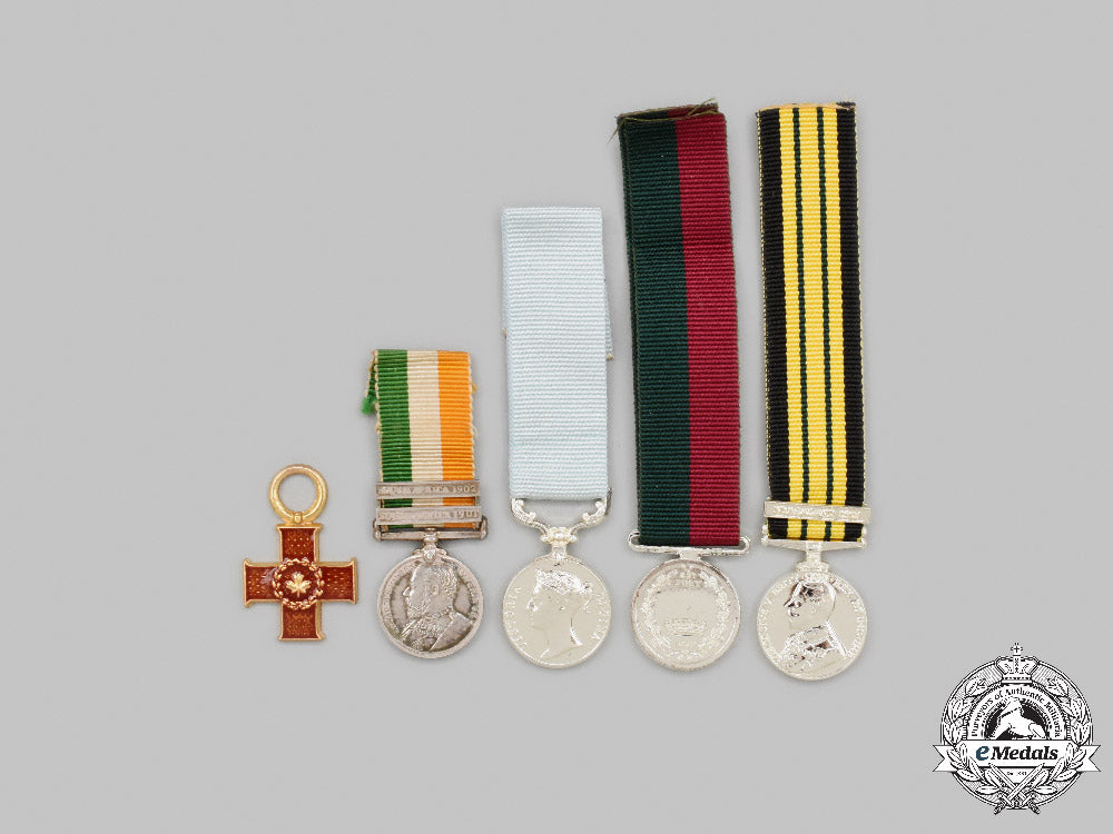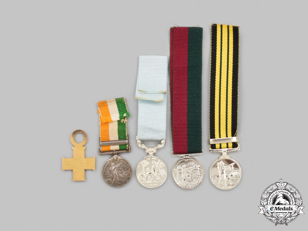 Un-mounted, the four British awards with original ribbons, the Canadian Cross of Valour without its ribbon, ranging from better than very fine to extremely fine.