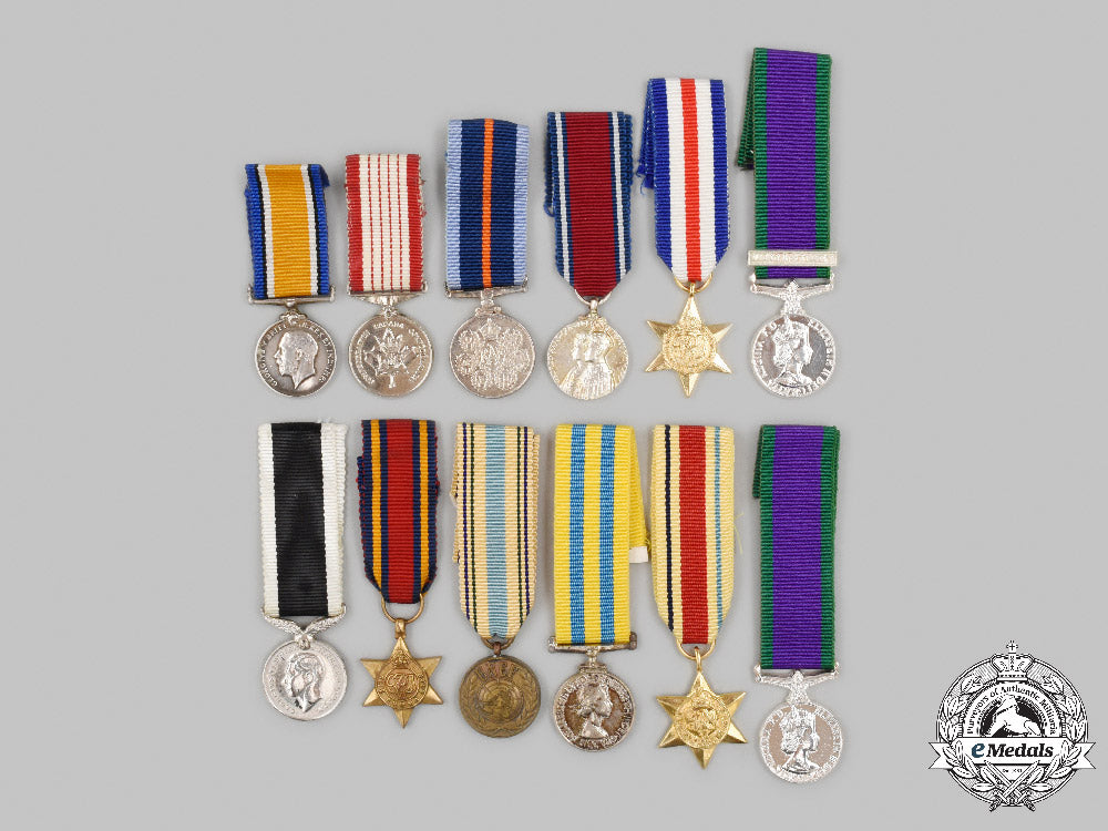 Un-mounted, original ribbons, the BCM and Canadian CM with a pinback, ranging from better than very fine to extremely fine.
