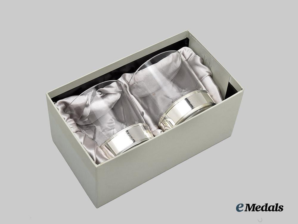United Kingdom. Her Majesty Queen Elizabeth II 2010 Royal Christmas Gift of a Pair of Glass Tumblers, Boxed