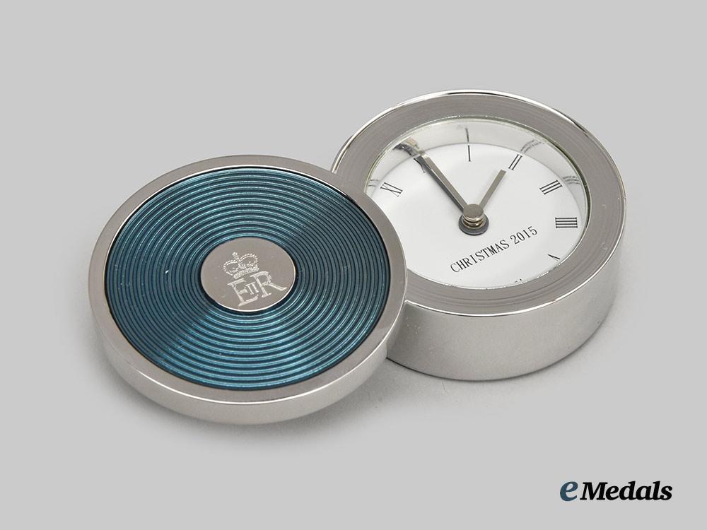 United Kingdom. Her Majesty Queen Elizabeth II. Christmas 2015 Gift of a Desk Alarm Clock, Boxed