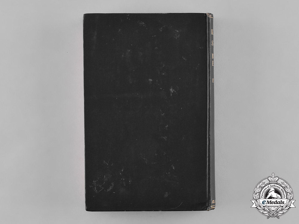 The Knights of St. John in the British Empire: Being the Official History of the British Order of the Hospital of St. John of Jerusalem by Sir Edwin J. King, published in London in 1934 by St. John’s Gate, 1934, hardcover presenting the St. John emblem in gilt on the front cover as well as the title and author in gilt along the spine, containing 248 pages, the inside presents a dedication in black ink stating Miss Evelyn Adela Marshall. An appreciation of thirty-three years of happy association with and devoted service to, the Keswick Nursing Division. St. John Ambulance Brigade. October 1945, along with the dates in pencil 1911-1944, measuring 14.2 cm (w) x 22.5 cm (h), mild staining to the cover, in otherwise very fine condition.