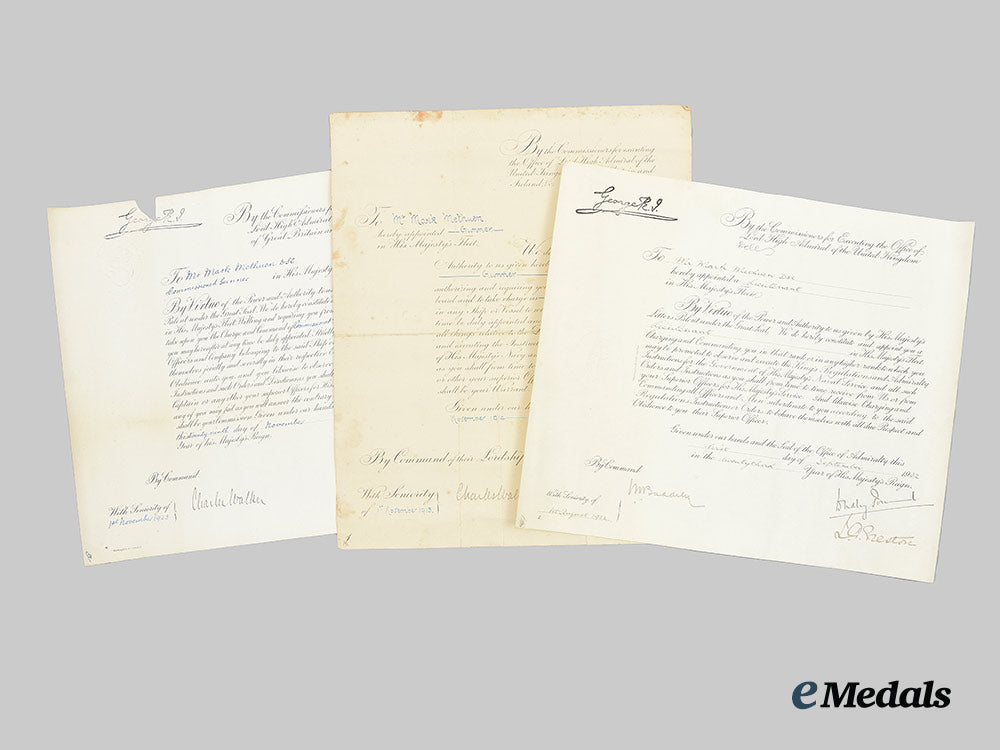United Kingdom. Three First World War And Post War Naval Commission Documents To Lt. Mark Methuen, Dsc