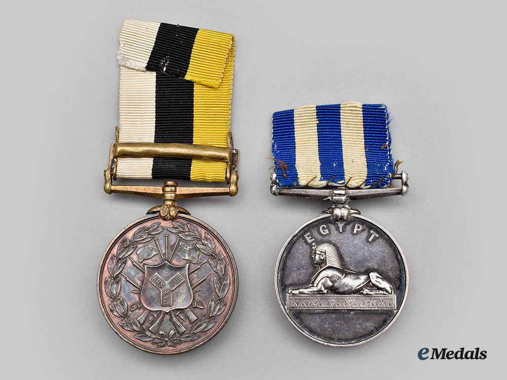 1. The Egypt Medal 1882-1889 was awarded for the military actions involving the British Army and Royal Navy during the 1882 Anglo-Egyptian War and in the Sudan, between 1884 and 1889. Resentment at increasing British and other European involvement in Egypt since the opening of the Suez Canal in 1869 triggered an Egyptian army mutiny that threatened the authority of the British-backed Khedive of Egypt, Tewfik Pasha. The British military intervention was in response, to protect British interests. Once in Egypt, the British became involved in the conflicts in the Sudan, which Egypt had occupied since the 1820s. All recipients of the Egypt Medal were also eligible for one of the four versions of the Khedive's Star.