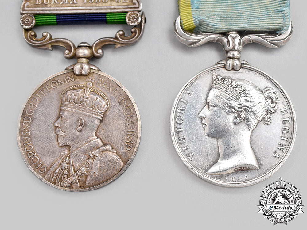 1. Crimea Medal 1854-1856. In silver, un-named, measuring 36 mm in diameter, contact marks, edge nicks, bruised, original ribbon.