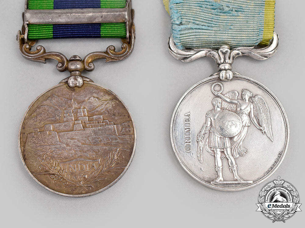 1. The Crimea Medal was a campaign medal approved on December 15, 1854, for issue to officers and men of British units (land and naval) which fought in the Crimean War of 1854-1856 against Russia. The medal was awarded with the British version of the Turkish Crimea Medal, but when a consignment of these was lost at sea, some troops received the Sardinian version.