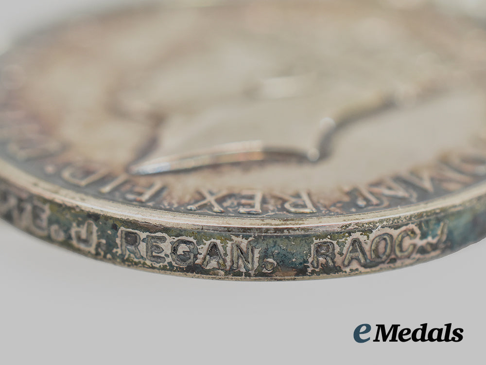 A General Service Medal (1918-1962), in silver, rim impressed 22281574 PTE. J REGAN. RAOCJ, worn on original ribbon with MALAYA clasp(1949-52 Issue), lovely patina, remains in very fine condition.