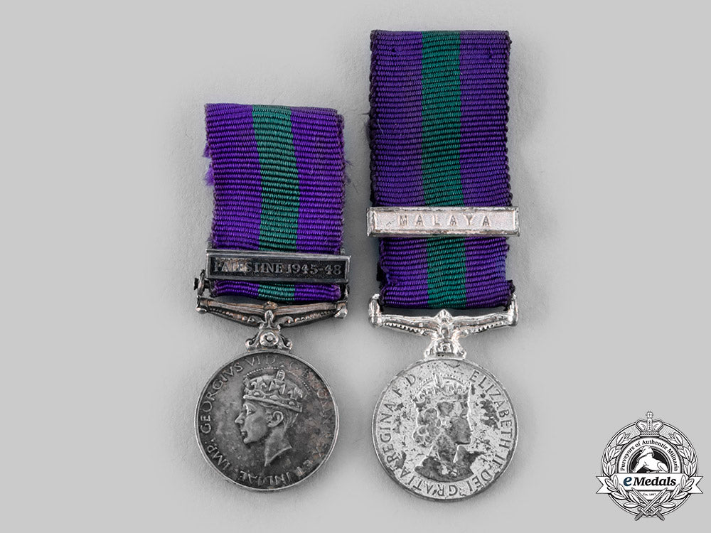 1. General Service Medals 1918-1962, 1 Clasp - PALESTINE 1945-48, George VI (in silver, measuring 18 mm in diameter); and