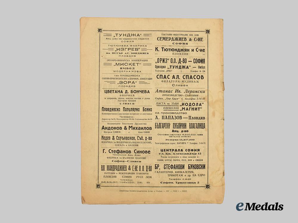 An “Our Cavalry” magazine of the Bulgarian Equestrian Association, dated July 1946, issue 2 and 3, comprising 32 pages in cyrillic text and multiple images, slight tears and fraying of paper, remains in near very fine condition.