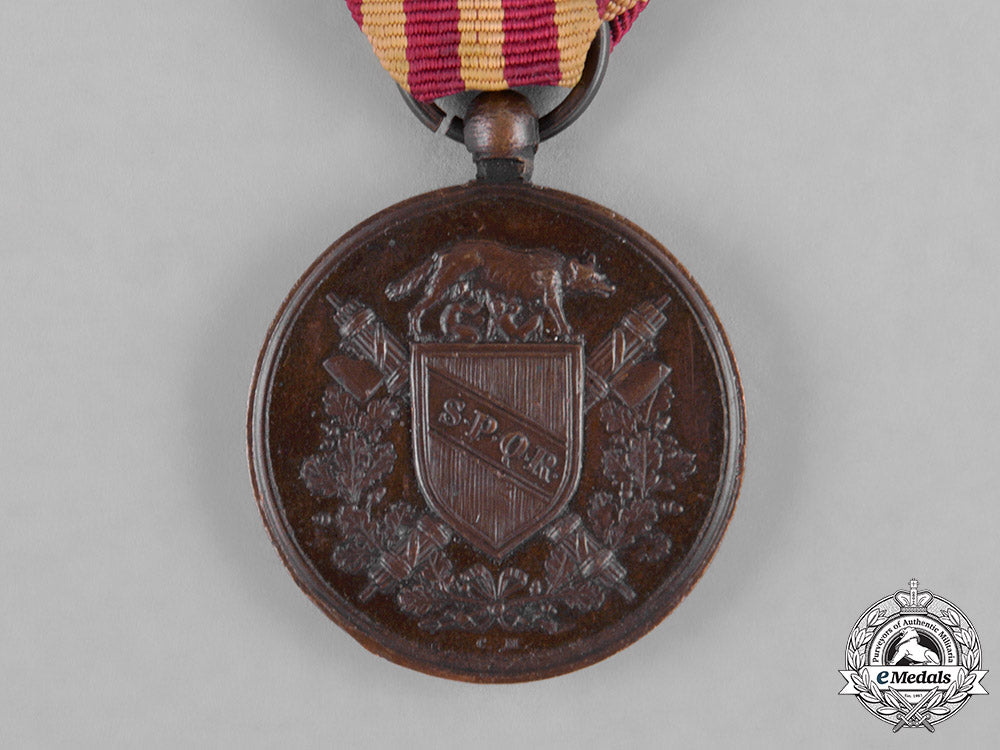 Footnote: The medal was instituted on September 27, 1870 and awarded to those who took part in the defense and liberation of Rome from 1849 to 1870.