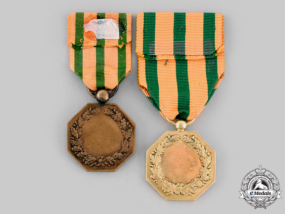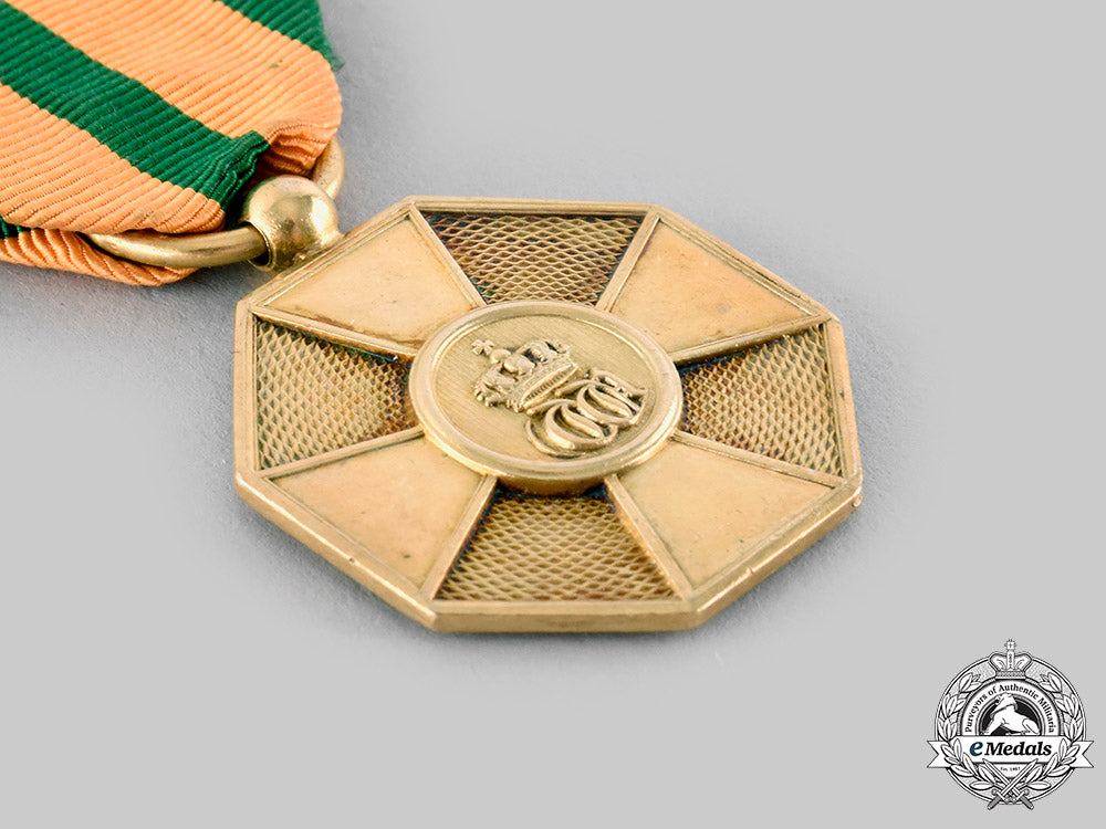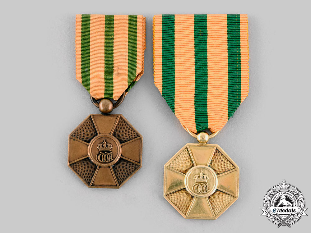 (Ordre de la Couronne de Chene). Instituted in 1841. I Class Gold Grade: in silver gilt, hallmarked on the ring, measuring 29.2 mm (w) x 34.3 mm (h) inclusive of its laterally-pierced ball suspension, original ribbon; and III Class Bronze Grade: in bronze, measuring 29 mm (w) x 35 mm (h) inclusive of its laterally-pierced ball suspension, original ribbon. Contact marks, better than very fine.