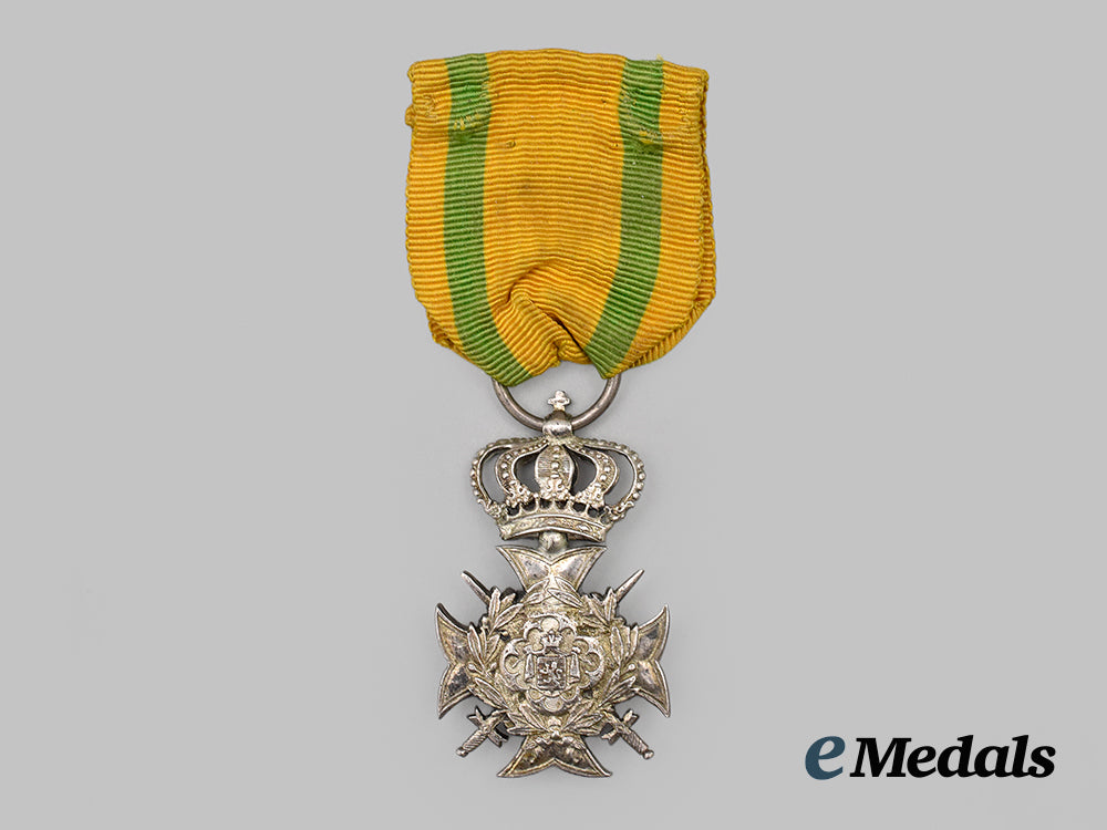 (Croix de service pour les membres de l'Armée, de la Gendarmerie et de la Police). Instituted in 1850. Type I (1850-1882). In silver, measuring 29.3 mm (w) x 48.7 mm (h) inclusive of its crown suspension, moderate contact marks and surface wear, original ribbon, very fine.
