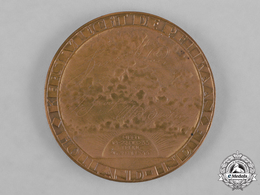 Netherlands, Kingdom. A 1933 Christmas Flight Of “The Pelican” Commemorative Medallion