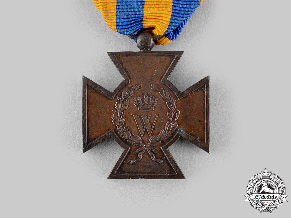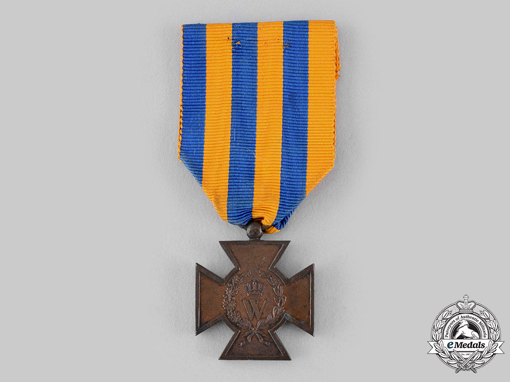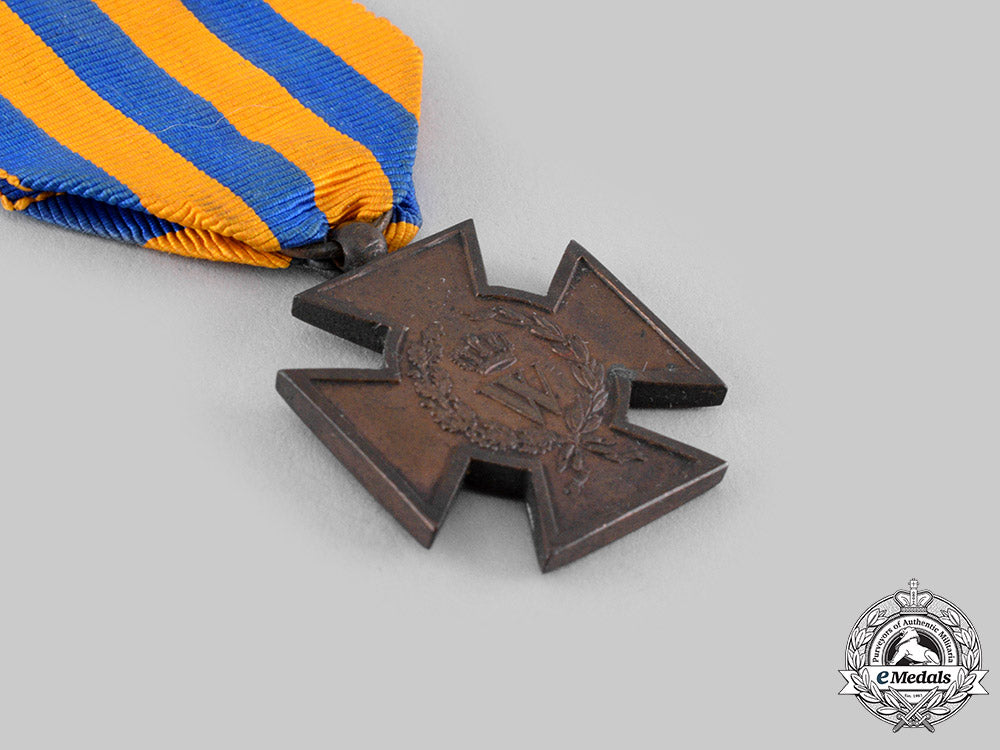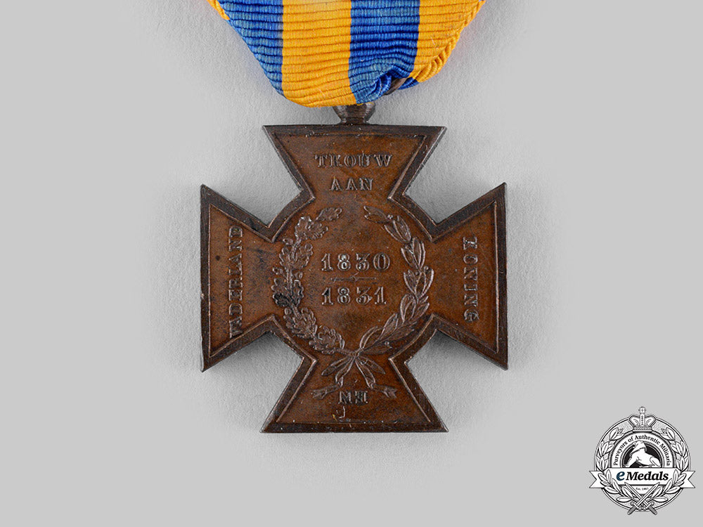 (Het Metalen Kruis 1830-1831). Instituted in 1831. In bronze, measuring 29.2 mm (w) x 34 mm (h) inclusive of its laterally-pierced ball suspension, spotting evident on the obverse, residue in the recessed areas from cleaning, original ribbon, near extremely fine.