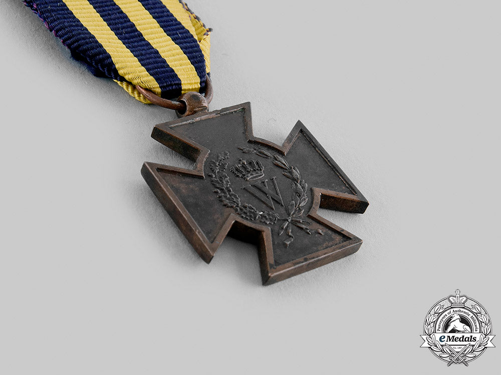 Footnote: The Hasselt Cross was instituted by Royal Order no. 70 on September 12, 1831 and awarded to participants in the war against Belgium of 1830-1831. Its official name is the Metalen Kruis (Metal Cross) but it is popularly known as the Hasselt Kruis (Hasselt Cross) since the bronze for the cross came from Belgian cannon captured during the Battle of Hasselt on August 8, 1831. At the Congress of Vienna in 1815, at which the Great Powers laid out the post-Napoleonic European map, Belgium became part of the new Kingdom of the Netherlands. However, the French-speaking Catholic elements of the population became increasingly disenchanted with the rule of the Dutch-speaking Protestant King Willem I and a rebellion started in Brussels in 1830. Belgian independence was declared and Dutch forces invaded but withdrew at the insistence of France and Britain. The independence of Belgium with Prince Leopold of Saxe-Coburg-Gotha as king was ratified at the London Conference of 1830-1831. The Cross for Important Military Operations was a military decoration of Kingdom of the Netherlands. It was created by royal decree on February 19, 1869, by King William III and awarded for participation in major military operations between 1846 and 1942.