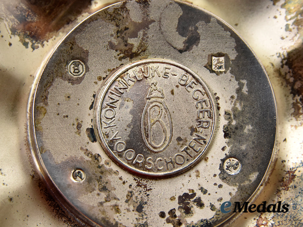 (Je Maintiendrai). Instituted 19th March 1905 by Queen Wilhelmina. In silver, cross in dark orange enamel, circled by a laurel wreath. Centre obverse shows the bugle-horn, monogram of the House of Orange, surrounded by the House’s motto, “Je matiendrai”, reverse shows crown and inscribed “W” (for the Queen), on its original orange ribbon, in original case, very fine condition.