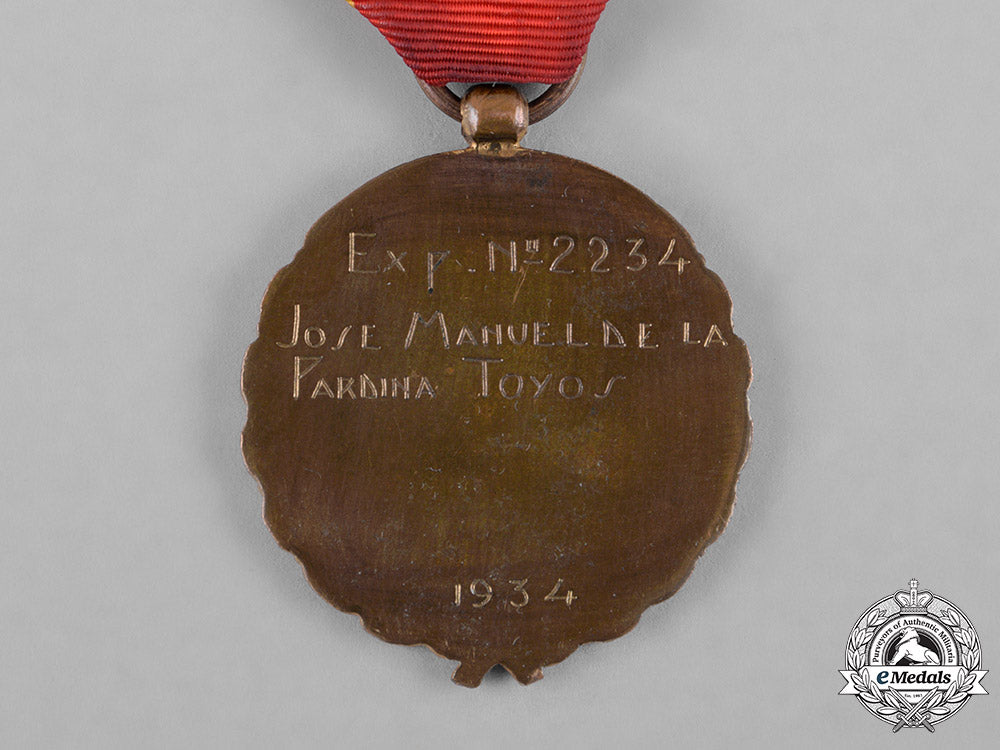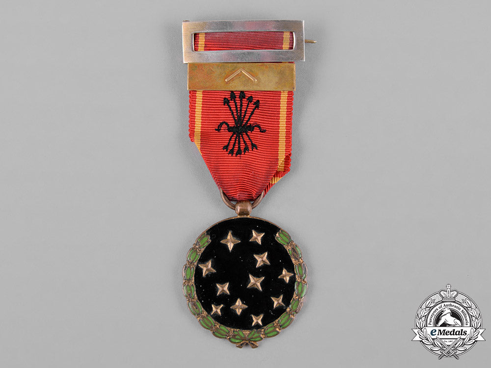 Spain, Civil War. An Old Guard Medal For Falange Members, First Line, Named And Dated, C.1945