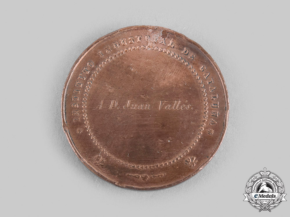 Spain, Kingdom. An Industrial Institute Of Catalonia Public Exhibition Of Industrial Products Award Medal 1850