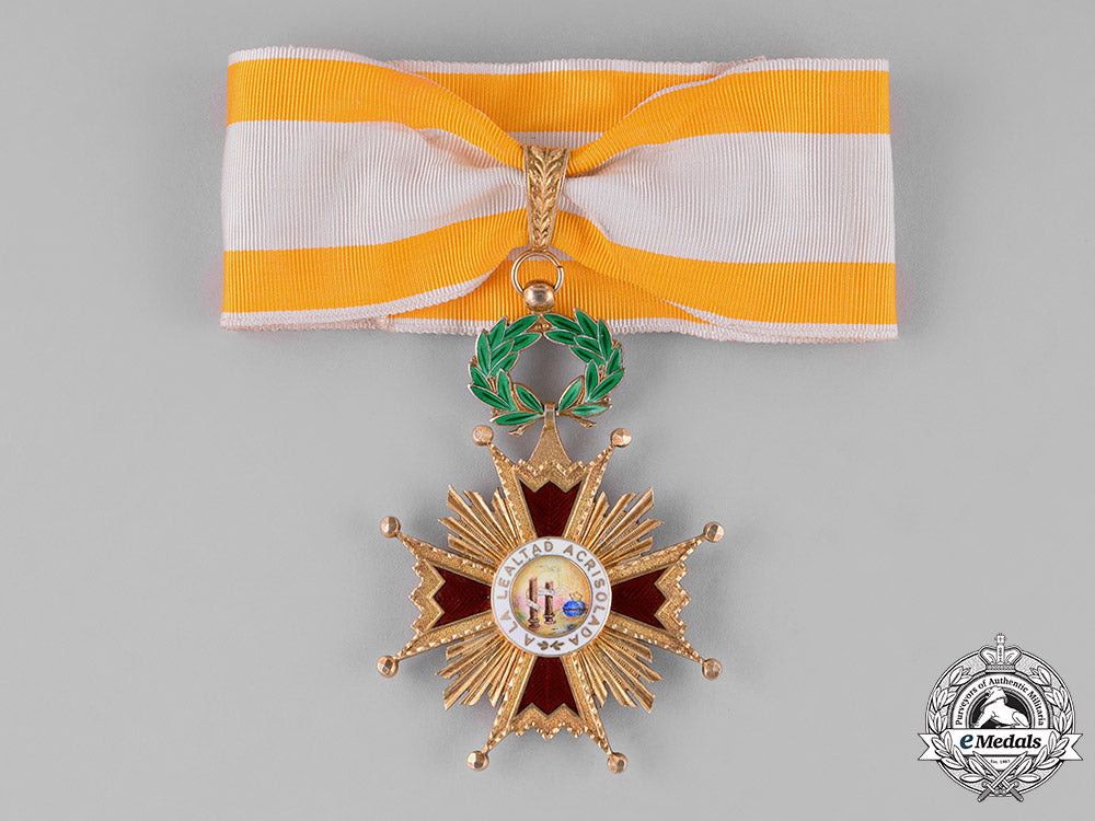 Footnote: The Order of Isabella the Catholic was instituted in Spain as the Royal and American Order of Isabella the Catholic by royal decree of King Fernando VII/Ferdinand VII on March 24, 1815. The name of the Order was modified by decree of April 15, 1889 when the Spanish Crown abandoned its intentions of ruling Latin America, and overseas. The Order was a civil and military order originally granted in recognition of those who had served the interests of the Spanish Crown in Latin America. Currently, the Order is conferred to foreigners and Spanish citizens for meritorious civil acts, especially those that foster the relationships between Spain and other nations.