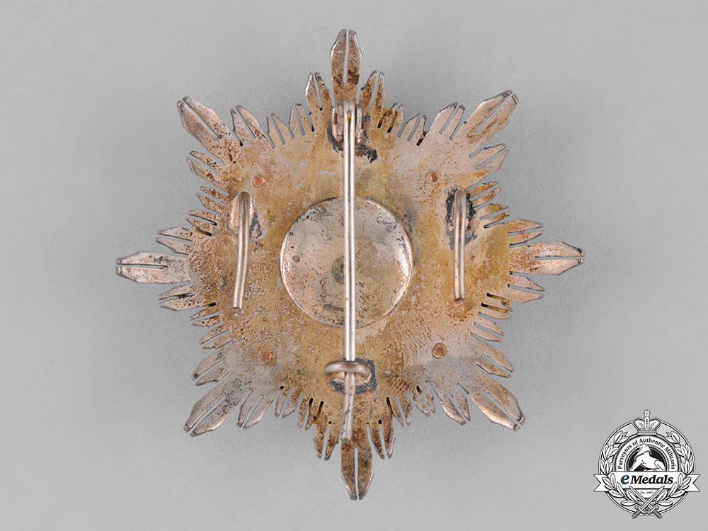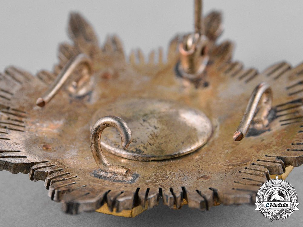 Red Distinction. Issued 1936-1975. A silvered bronze 8 pointed star with bronze gilt iconography in four quadrants of red enameled cross, centre in red, white, and blue enamels, measuring 61.5 mm (w) x 62 mm (h), reverse with pin assembly and dual stays, worn, very fine.