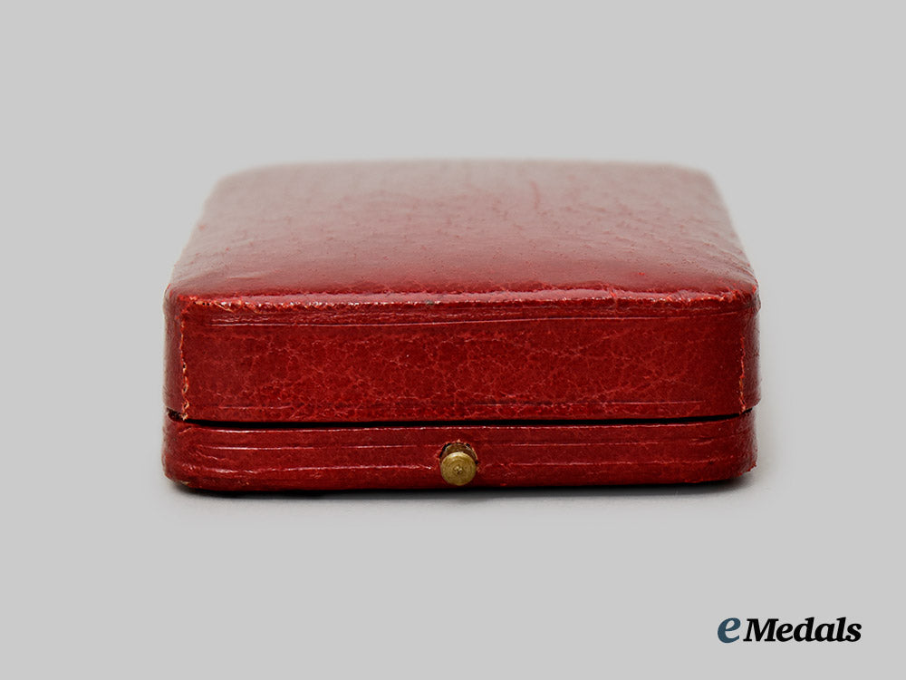 A Red Case with a velvet interior, measuring 11.3 cm (h) x 7.4 cm (w), including the ribbon bar for a 1936 Spanish Civil War Medal.