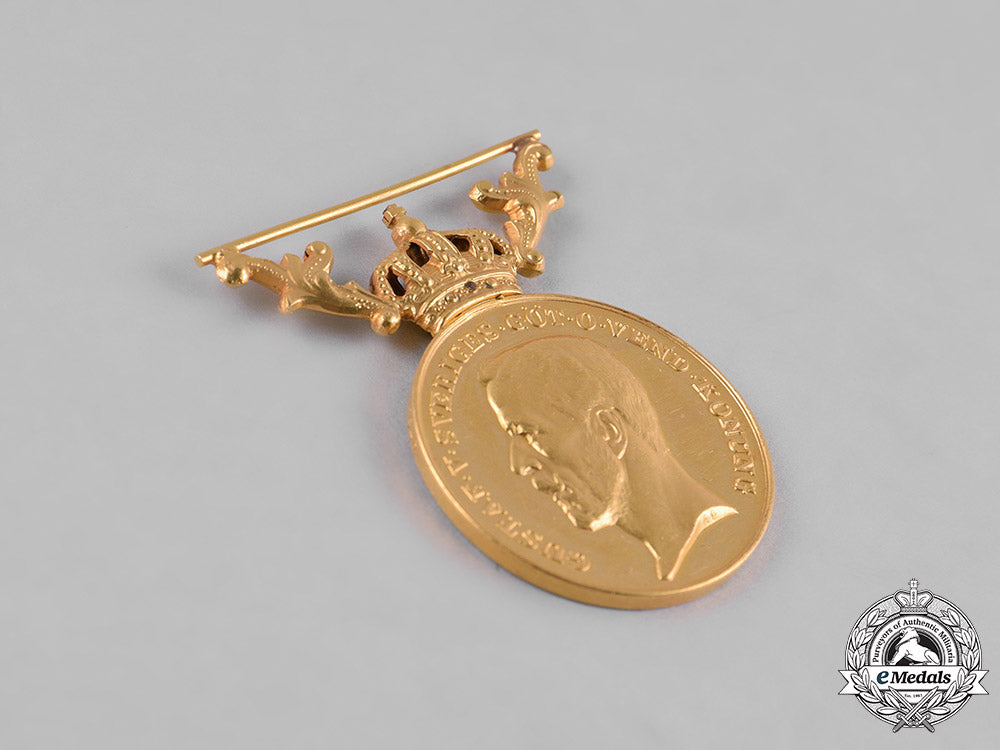 Sweden, Kingdom. A Medal For Zeal And Devotion In Gold, I Class, C.1910