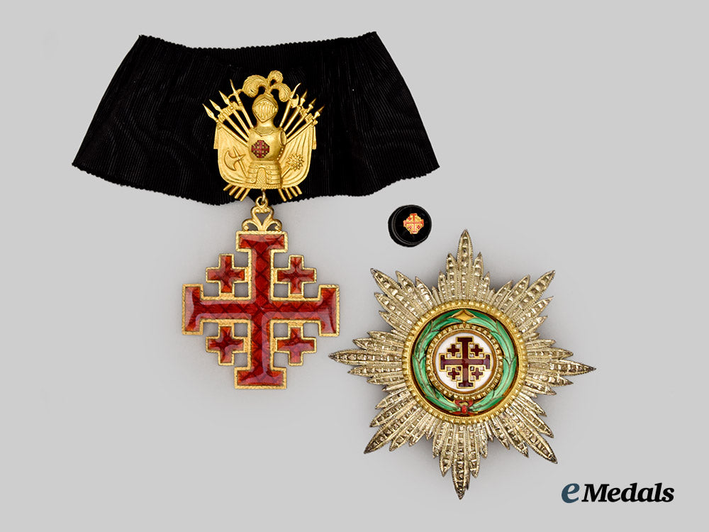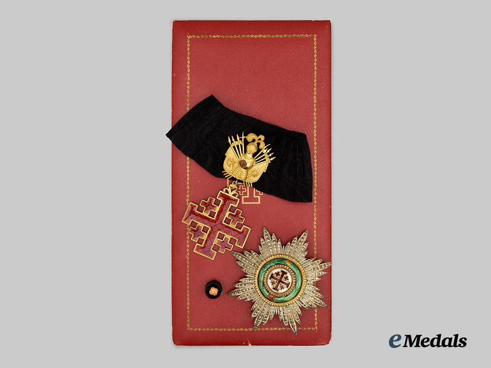 (Ordine equestre del Santo Sepolcro di Gerusalemme). Instituted circa 1099. Type II. (1950 issue). A cased Equestrian Order of the Holy Sepulchre of Jerusalem, Type II, Grand Officer set consisting of: