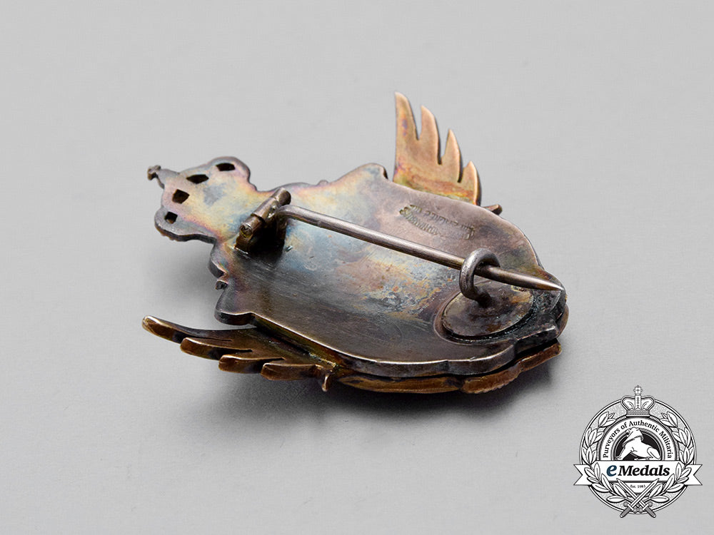 Badge of multi piece construction, in tombac and enamels, 48.2mm x 53.4mm, marked on reverse by Zagreb's maker "Knaus", of excellent quality manufacture, in extremely fine condition and rare.