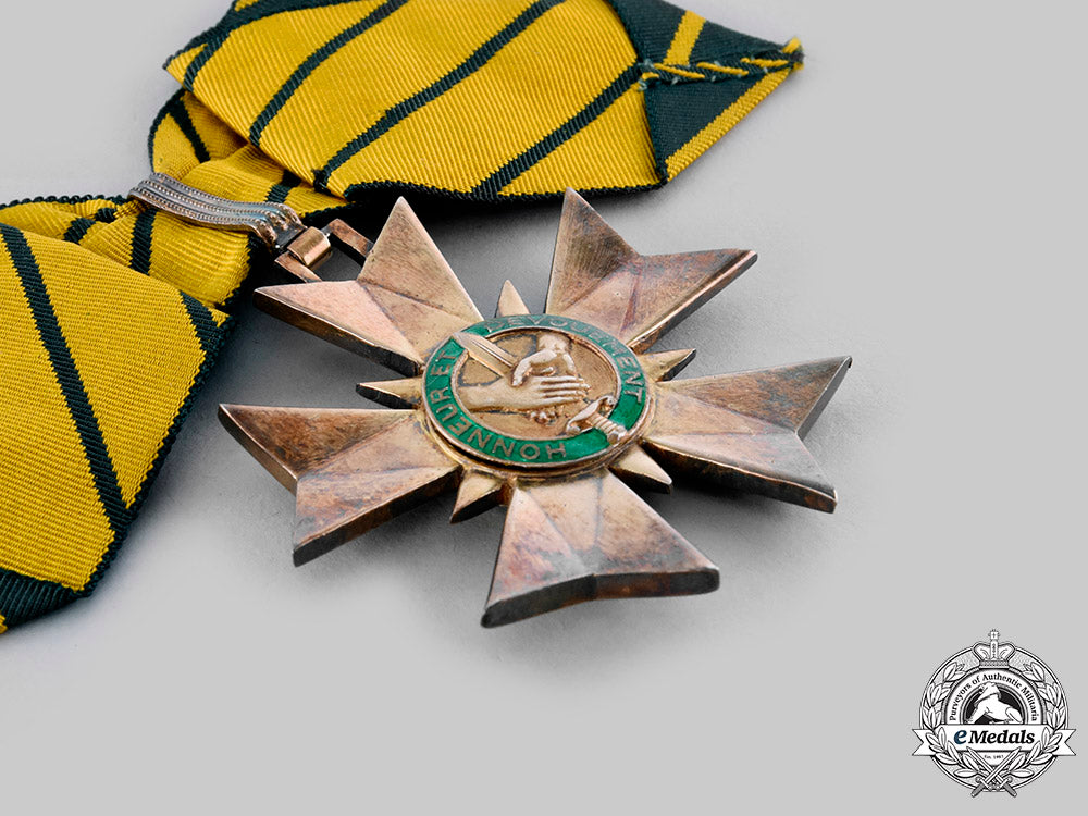 Footnote: The Order of Merit for Service to Veterans was instituted on September 14, 1953 and discontinued on January 1, 1964, replaced by the National Order of Merit. It was awarded for meritorious services to ex-servicemen and war victims of the two world wars, in three grades: Commander, Officer and Knight.