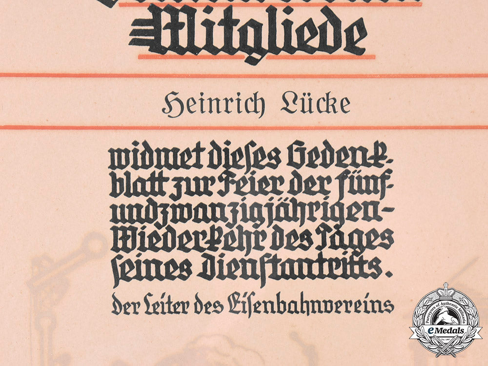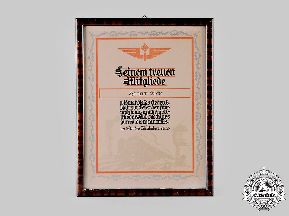 Germany, Third Reich. A Deutsche Reichsbahn 25-Year Service Award To Heinrich Lücke
