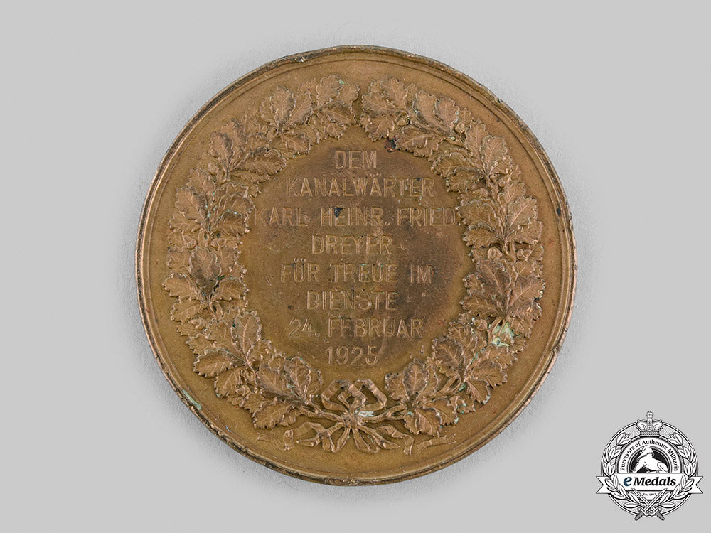Lubeck, Free City. A Loyalty In The Service Medal, To Karl Heinrich Friedrich Dreyer, C.1925