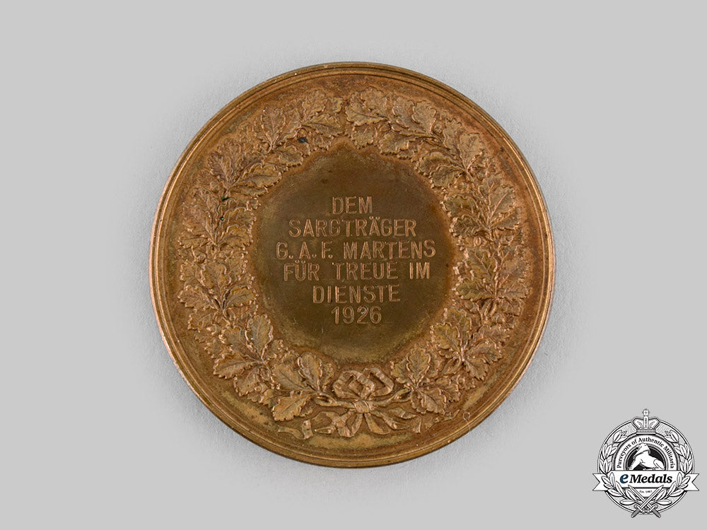 Lubeck, Free City. A Loyalty In The Service Table Medal,To G. A. F. Martens, C.1926