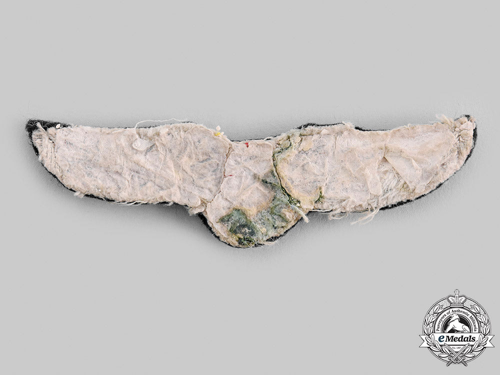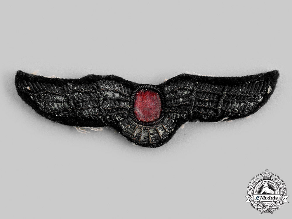 The badge consists of a wing in lacquered bullion with a red circle on the centre, measuring 30.01 mm (w) x 21.35 mm (h), the reverse with white parchment, with frayed edges, fair condition.
