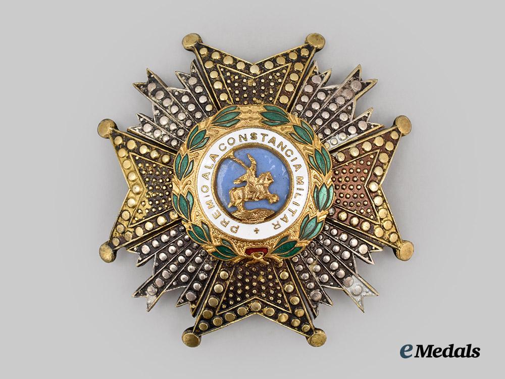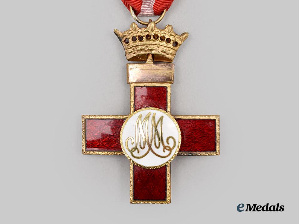 An Order of Military Merit, I Class Cross in Red Distinction with Imperial Crown, in bronze gilt and enamels, reverse medallion bearing MM monogram, measures 42.2 mm (w) x 54.4 mm (h), minor enamel wear, original ribbon with brooch style clip, very fine condition.