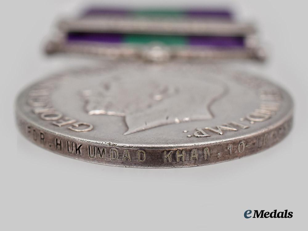 United Kingdom. A General Service Medal to Huk Umdad Khan, 10th Lancashire