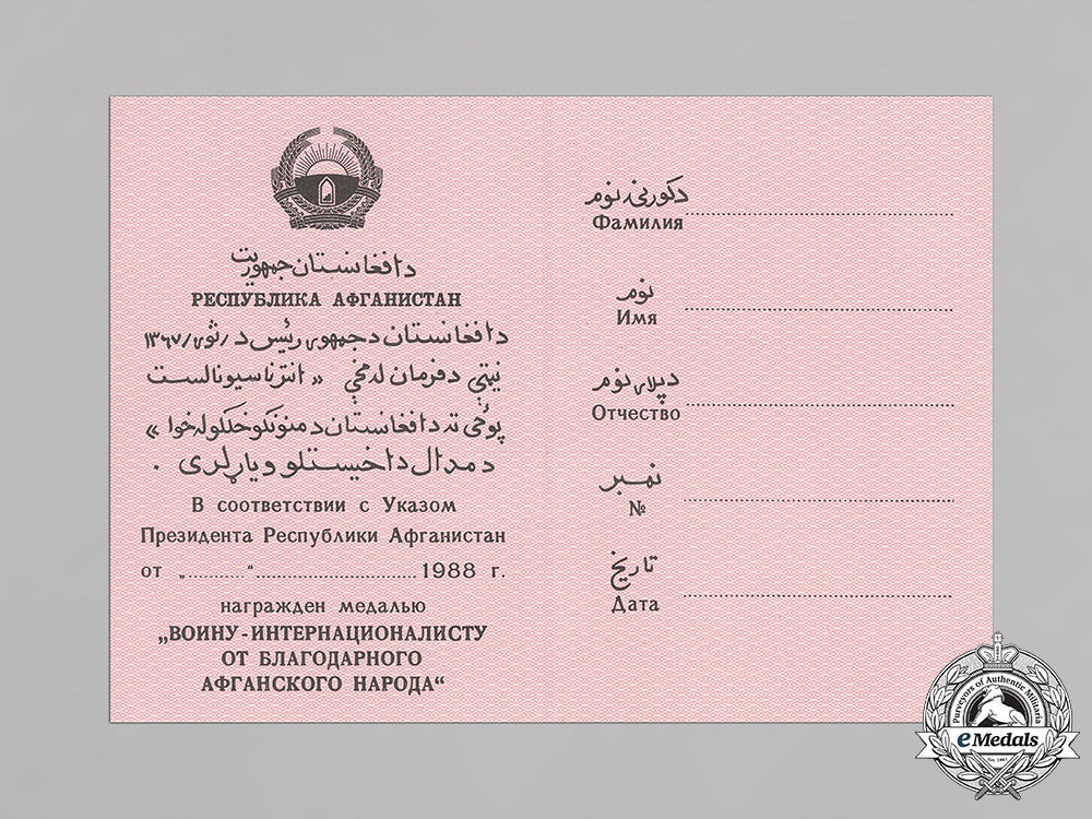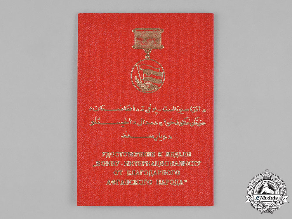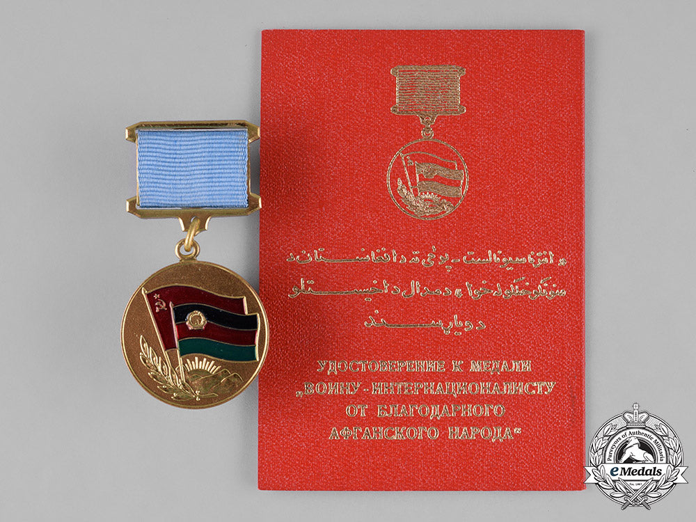 Footnote: The Medal for International Fighters (AKA Medal From the Grateful Afghan People) was instituted on December 28, 1988 and awarded to Soviet troops who served in Afghanistan from 1979 to 1989.